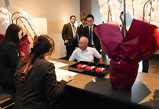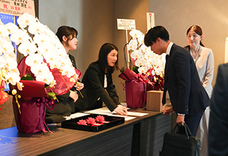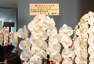 関係各位様から多数の祝電やお祝いの祝花を頂き、